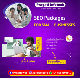 Elevate your business with Pragati Infotech's premium services, spanning web development, digital marketing, SEO, and graphic design. As your trusted partner, we redefine success in India, through cutting-edge solutions and innovative strategies for a thriving online presence.
